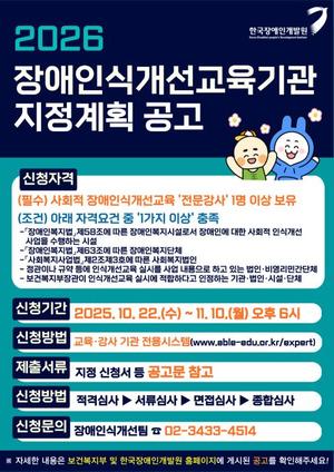º¸°Çº¹ÁöºÎ(Àå°ü Á¤Àº°æ)¿Í Çѱ¹Àå¾ÖÀΰ³¹ß¿ø(¿øÀå À̰æÇý, ÀÌÇÏ °³¹ß¿ø)Àº ³»´Þ 10ÀϱîÁö 2026³âµµ Àå¾ÖÀνݳ¼± ±³À°±â°üÀ» ¸ðÁýÇÑ´Ù°í...
