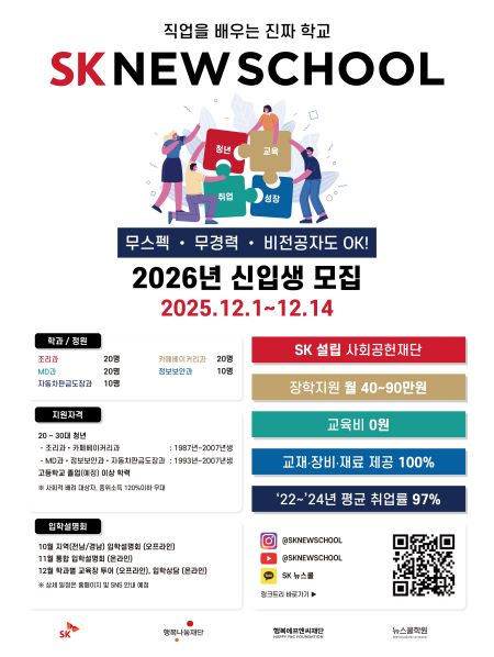 SK·Çູ³ª´®Àç´Ü·Çູ¿¡ÇÁ¾Ø¾¾Àç´ÜÀÌ ¿î¿µÇϴ û³â Á÷¾÷±³À° »ç¾÷ SK ´º½ºÄðÀÌ 12¿ù 1ÀϺÎÅÍ 14ÀϱîÁö 2026³âµµ ½ÅÀÔ»ýÀ» ¸ðÁýÇÑ´Ù.