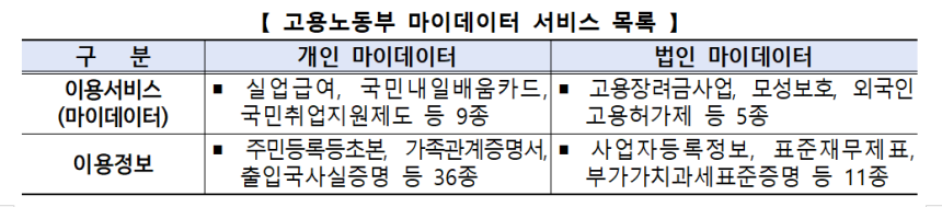 ´ë»ó ¹Î¿øÀº °³ÀÎ 9Á¾, ±â¾÷ 5Á¾ µî ÃÑ 14Á¾ÀÌ´Ù. ÀÌ °úÁ¤¿¡¼ Á¦ÃâÇÏ´ø ¼·ù 37Á¾ÀÌ ÀÚµ¿ Á¶È¸·Î ´ëüµÈ´Ù. À°¾ÆÈÞÁ÷±Þ¿©, À¯±ÞÈÞ¾÷Áö¿ø±Ý, ±¹¹Î³»ÀϹè¿òÄ«µåºÎÅÍ ¸ÕÀú Àû¿ëµÇ°í, ³»³â »ó¹Ý±â¿¡´Â ¸ð¼ºº¸È£·½Ç¾÷±Þ¿© µî ¼ºñ½º Àü¹ÝÀ¸·Î È®´ëµÈ´Ù. ±â¾÷ ´ë»ó °í¿ëÀå·Á±Ý·¿Ü±¹Àΰí¿ëÇã°¡Á¦ µîÀº ³»³â Á߹ݺÎÅÍ ¿¬µ¿µÉ ¿¹Á¤ÀÌ´Ù.