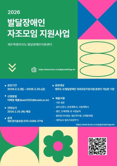 | Çѱ¹Àå¾ÖÀΰ³¹ß¿ø Á¦ÁÖÆ¯º°ÀÚÄ¡µµÀå¾Ö¾Æµ¿·¹ß´ÞÀå¾ÖÀÎÁö¿ø¼¾ÅÍ´Â 2¿ù 20ÀϱîÁö 2026³â ¹ß´ÞÀå¾ÖÀÎ ÀÚÁ¶¸ðÀÓ Áö¿ø»ç¾÷ ¼öÇà±â°üÀ» ¸ðÁýÇÑ´Ù. |