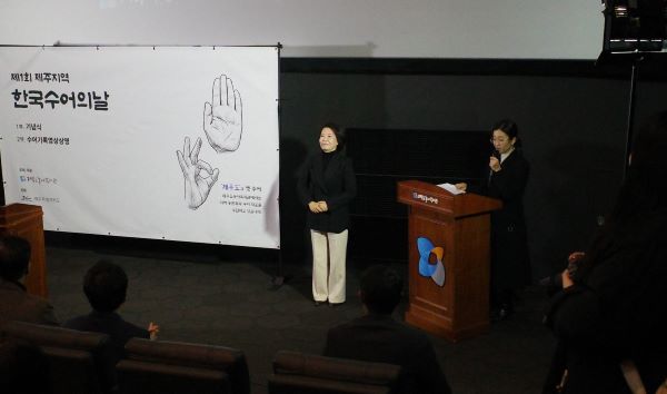 ¸Å³â 2¿ù 3ÀÏÀº Çѱ¹¼ö¾î¸¦ Çѱ¹¾î¿Í µ¿µîÇÑ ÀÚ°ÝÀ» °®Ãá °ø¿ë¾î·Î ¸í½ÃÇÑ Çѱ¹¼öȾð¾î¹ý Á¦Á¤À» ±â³äÇÏ´Â ¡¸Çѱ¹¼ö¾îÀÇ ³¯¡¹ÀÌ´Ù. ±×µ¿¾È Çѱ¹¼ö¾îÀÇ ³¯ ±â³äÇà»ç´Â ŸÁö¿ª¿¡¼¸¸ °³ÃֵǾî Á¦ÁÖÁö¿ª ³óÀεéÀÇ Âü¿©°¡ ¾î·Á¿üÀ¸³ª, À̹ø Á¦ÁÖÁö¿ª¿¡¼ óÀ½À¸·Î ±â³äÇà»ç°¡ °³ÃֵǾî Á¦ÁÖÁö¿ª ³ó¹®È¿Í ¼ö¾îÀÇ °¡Ä¡¸¦ µÇµ¹¾Æº¸´Â ¶æ±íÀº ÀÚ¸®¿´´Ù.