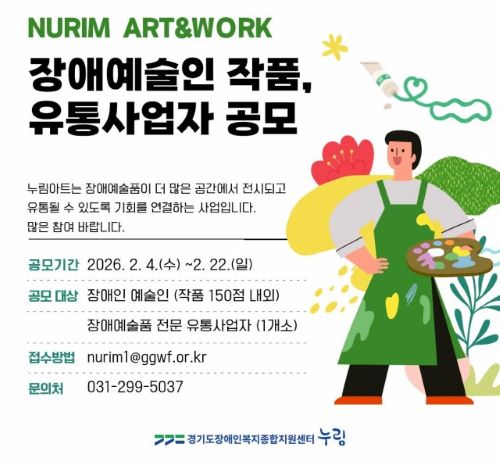 °æ±âµµÀå¾ÖÀκ¹ÁöÁ¾ÇÕÁö¿ø¼¾ÅÍ(´©¸²¼¾ÅÍ)´Â ‘´©¸² Art&Work’ »ç¾÷ÀÇ ÀÏȯÀ¸·Î Àå¾Ö¿¹¼úǰ À¯ÅëÇù·Â °ø¸ð¸¦ ½Ç½ÃÇÑ´Ù.