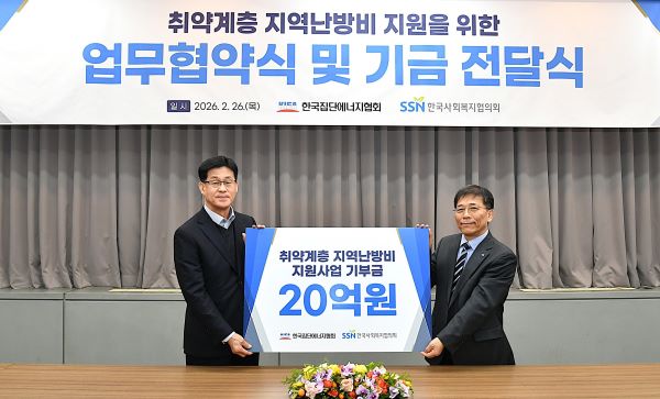 Çѱ¹»çȸº¹ÁöÇùÀÇȸ(ȸÀå ±èÇöÈÆ)´Â Áö³ 26ÀÏ Çѱ¹Áý´Ü¿¡³ÊÁöÇùȸ(ȸÀå Á¤¿ë±â)¿Í Ãë¾à°èÃþ Áö¿ª³¹æºñ Áö¿ø»ç¾÷À» À§ÇÑ ¾÷¹«Çù¾àÀ» ü°áÇÏ°í °ü·Ã »ç¾÷ ÃßÁøÀ» À§ÇÑ ±â±Ý 20¾ï ¿øÀ» Àü´Þ¹Þ¾Ò´Ù°í ¹àÇû´Ù.