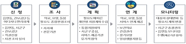 ´ë»óÀÚ·Î ÆÇÁ¤µÈ ÈÄ¿¡´Â ÁöÀÚü¿Í °Çº¸°ø´Ü ´ã´çÀÚ°¡ ½ÅûÀÎ °¡Á¤À» ¹æ¹®ÇØ °Ç° »óÅÂ, »ýȰ ¿©°Ç µîÀ» Á¶»çÇØ ÀÇ·á, ¿ä¾ç, µ¹º½ µî ¼ºñ½º ¿å±¸¸¦ ÆÄ¾ÇÇÑ´Ù.