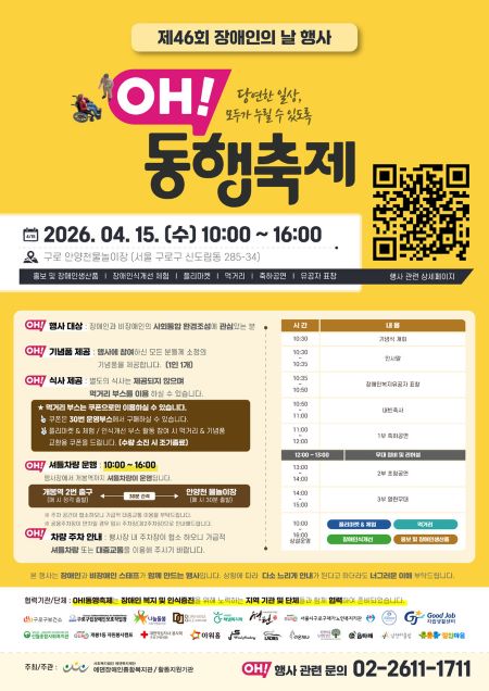 ¿¡µ§Àå¾ÖÀÎÁ¾ÇÕº¹Áö°ü(°üÀå Á¤À¯Áø)Àº ¿À´Â 15ÀÏ ¿ÀÀü 10½Ã ¼¿ï ±¸·Î±¸ ¾È¾çõ ¹°³îÀÌÀå¿¡¼ Á¦46ȸ Àå¾ÖÀÎÀÇ ³¯ ±â³ä Çà»ç ‘Oh! µ¿ÇàÃàÁ¦’¸¦ °³ÃÖÇÑ´Ù°í ¹àÇû´Ù.