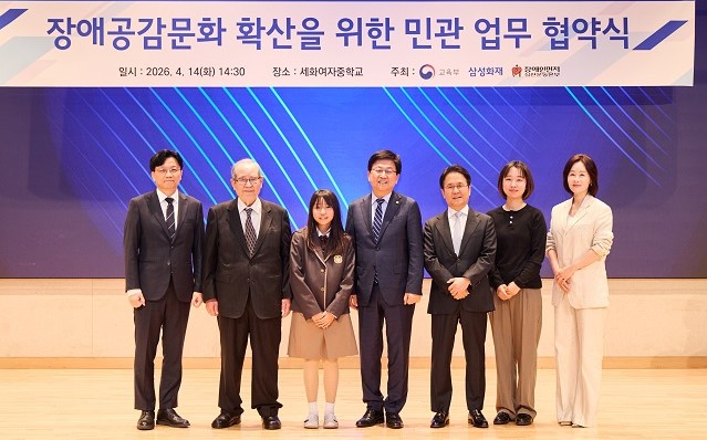 Àå¾ÖÀθÕÀú½Çõ¿îµ¿º»ºÎ(ÀÌ»çÀå À̼ö¼º)¿Í ±³À°ºÎ(Àå°ü ÃÖ±³Áø), »ï¼ºÈÀç(´ëÇ¥ÀÌ»ç »çÀå À̹®È)´Â Áö³ 14ÀÏ ¿ÀÈÄ 2½Ã 30ºÐ ¼¿ï ¼¼È¿©ÀÚÁßÇб³¿¡¼ ‘Àå¾Ö°ø°¨¹®È’ È®»êÀ» À§ÇÑ ¾÷¹« Çù¾àÀ» ü°áÇß´Ù.