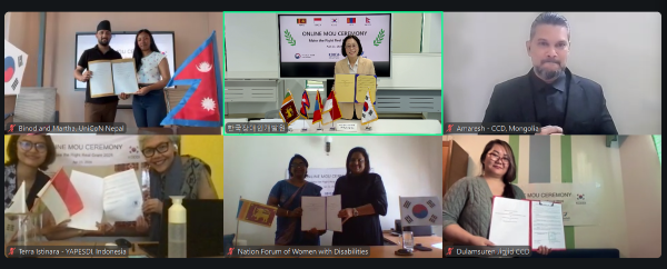 | Çѱ¹Àå¾ÖÀΰ³¹ß¿øÀÌ 23ÀÏ ³×ÆÈ·¸ù°ñ·½º¸®¶ûÄ«·Àεµ³×½Ã¾Æ »ç¾÷¼öÇà±â°ü°ú ‘2026³â Àå¾ÖÀαǸ®½Çõ ÇØ¿Ü°ø¸ð»ç¾÷’ ¾àÁ¤ ü°á½ÄÀ» ¿Â¶óÀÎÀ¸·Î ÁøÇàÇÑ °¡¿îµ¥, °¢ ±â°ü °ü°èÀÚµéÀÌ ¾àÁ¤¼¸¦ µé°í ±â³äÃÔ¿µÀ» Çϰí ÀÖ´Ù. |